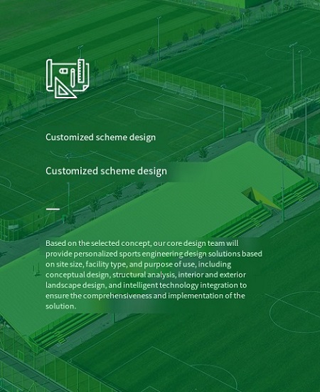 | 整合最前沿的 工艺技术和设计能力 通过整合最前沿的工艺技术和设计能力,Maisen致力于提供 全场景、多功能的运动流程规划设计解决方案,并进行基于 研究和分析根据项目选址特点确定项目功能定位和设施要求,提供 具有创新理念的设计规划方案,满足功能配置,从而实现设计方案的创新与实用兼 备。展示我们对客户尊重和服务的承诺。 |